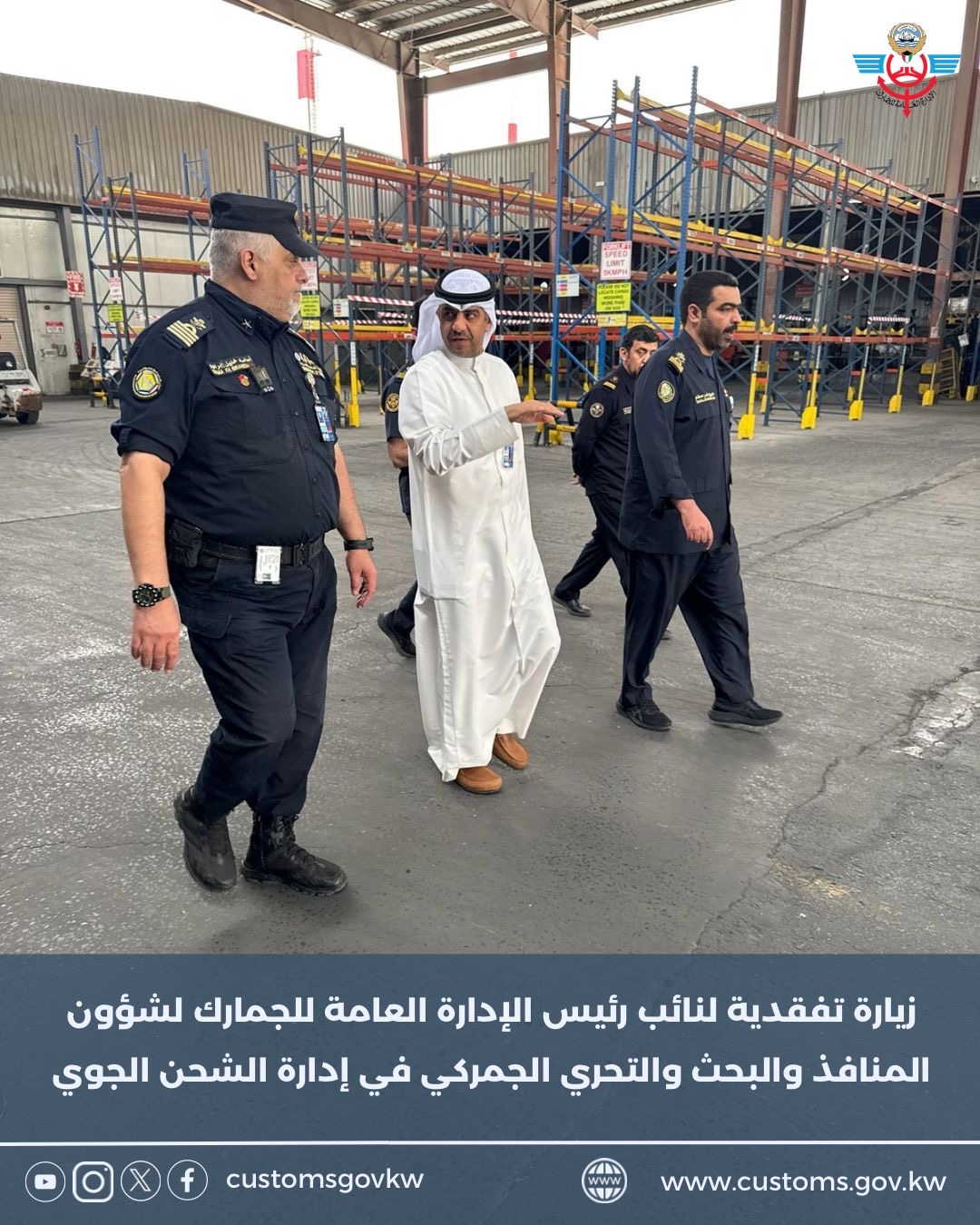 زيارة تفقدية لنائب رئيس الإدارة العامة للجمارك لشؤون المنافذ والبحث والتحري الجمركي في إدارة الشحن الجوي في إطار حرص الإدارة العامة للجمارك على المتا ...