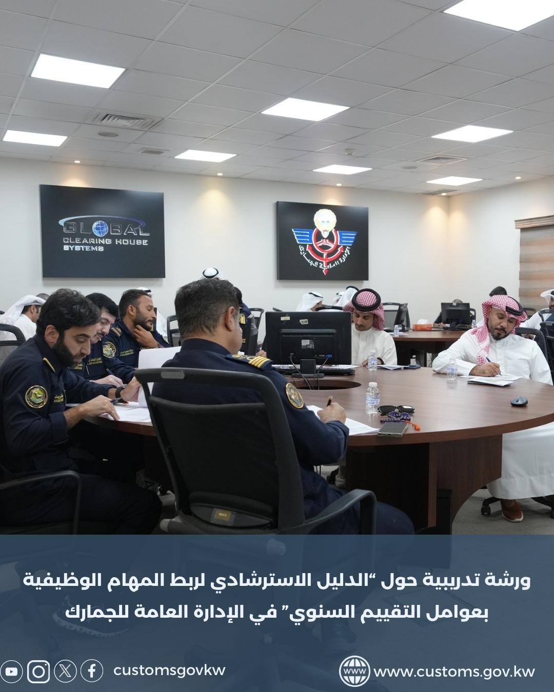 في إطار حرص الإدارة العامة للجمارك على تطوير كفاءات موظفيها ورفع مستوى الأداء الوظيفي، تنظم إدارة التطوير الإداري والتدريب ورشة عمل تدريبية بعنوان: “ا ...