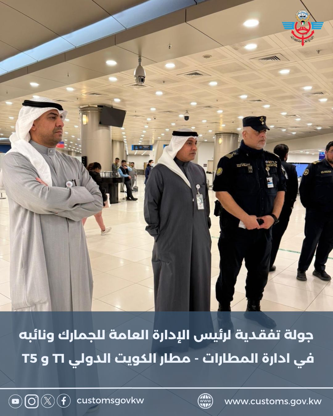 جولة تفقدية لرئيس الإدارة العامة للجمارك ونائبه في ادارة المطارات - مطار الكويت الدولي T1 و T5 في إطار حرص الإدارة العامة للجمارك على المتابعة الميدانية لسير العمل والاطلاع على جاهزية المرافق الجمرك...